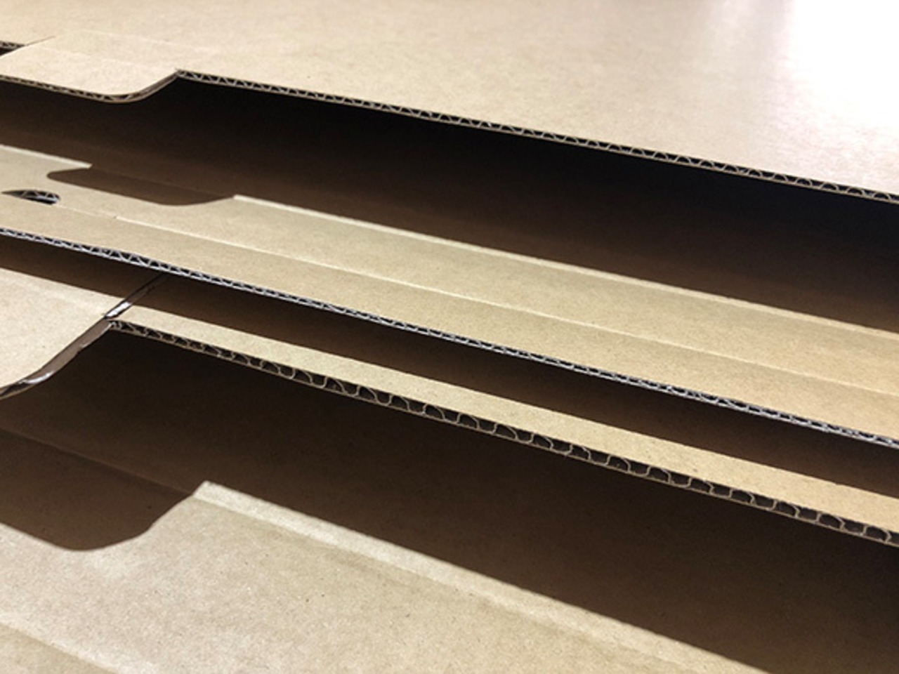厚みが5mmのしっかりした強度のある素材です。(Aフルート段ボール)